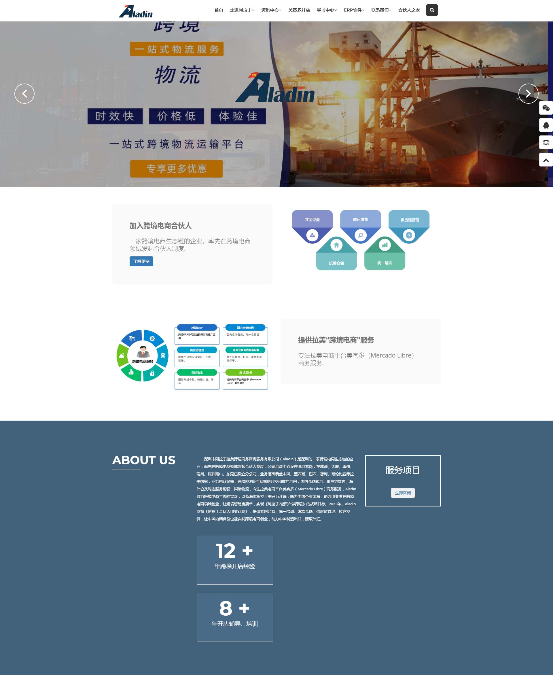 一家跨境电商生态链的企业,率先在跨境电商领域发起合伙人制度,公司运营中心设在深圳龙岗,在成都、太原、惠州、南昌、深圳南山、东莞已设立分公司,业务范围覆盖中国、墨西哥、巴西、智利、哥伦比亚等拉美国家,业务内容涵盖:跨境ERP协同系统的开发和推广运用,国内仓储转运、供应链管理、海外仓及周边服务配套,国际物流,